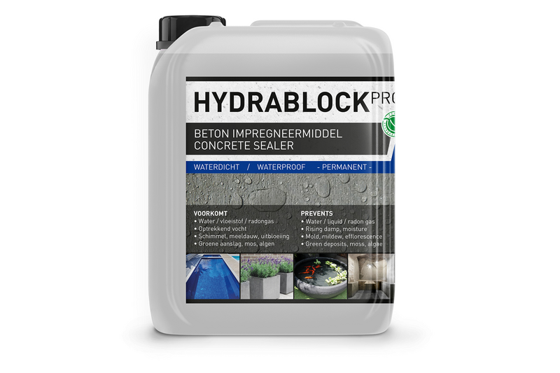 GreenSeal Solutions Pro line is ontworpen voor huiseigenaren, bouwers en aannemers die op zoek zijn naar een innovatieve en kwalitatieve oplossing. Hydrablock Pro is een hoog presterende, waterdichtende beton impregneermiddel dat tevens aanslag van schimmel en organische materialen helpt voorkomen. Door de waterdichtende werking kunnen organische materiaal zich niet meer hechten aan de ondergrond.