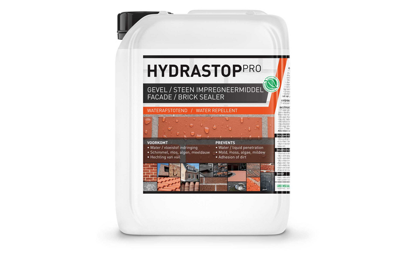 Tergeo Pro Cleaner. Hydrastop Pro – gevel, bestrating en metselwerk impregneermiddel – is eenvoudig aan te brengen met een lage drukspuit, roller of kwast. Hydrastop Pro is een eindafwerking en behoeft slechts 1 applicatie. Bestrating, terrassen, dakpannen en gevels maakt u met slechts 1 laag volledig waterafstotend. Economisch in gebruik; 1 liter is geschikt voor het behandelen van ± 8 m2.