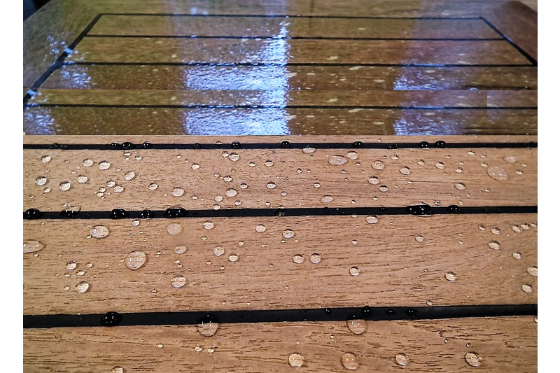 - Werkt heel gemakkelijk, kleurloos en teakhout behoudt de kleur wordt (na drogen) niet donkerder