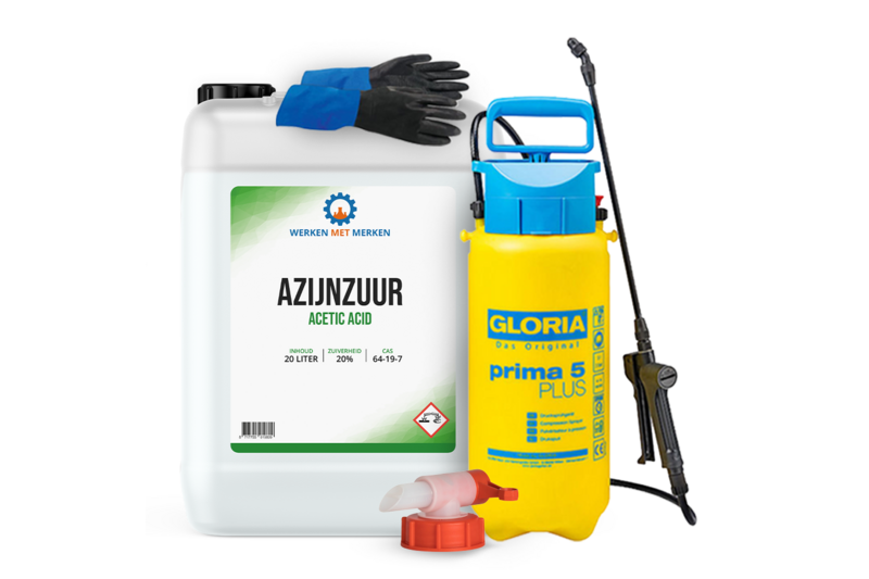 Azijnzuurbestendige drukspuit: Met deze handige drukspuit breng je het azijnzuur nauwkeurig aan op de te behandelen oppervlakken.