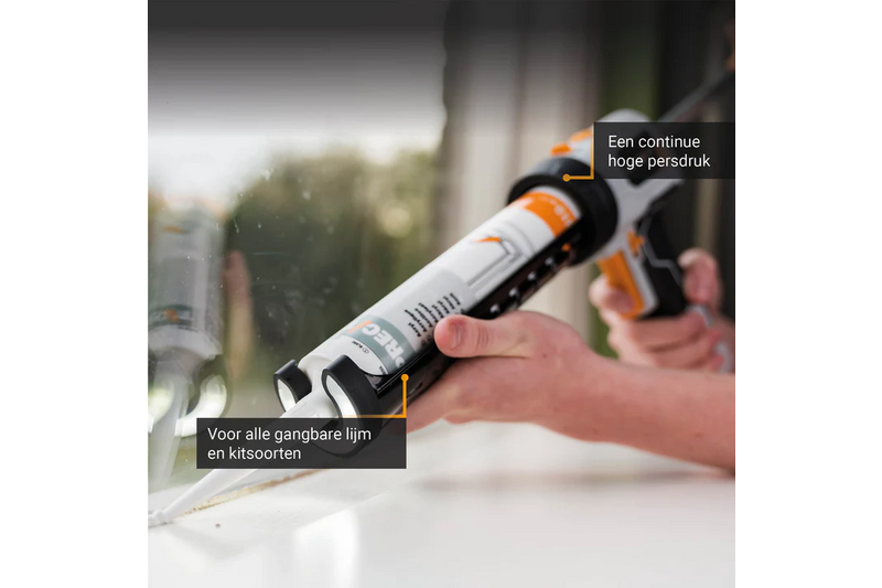 Of je nu een douche afdicht, sierlijsten installeert of houten panelen lijmt, het 6V Kitpistool levert precisie, kracht en draagbaarheid. Het is een slimme upgrade voor iedereen die de klus wil klaren zonder het gedoe van handmatige druk of zware apparatuur.